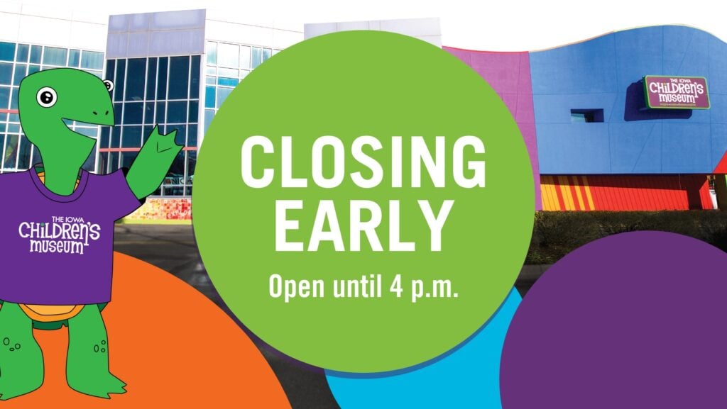 The Iowa Children’s Museum is closed on Mondays. Come play again soon!