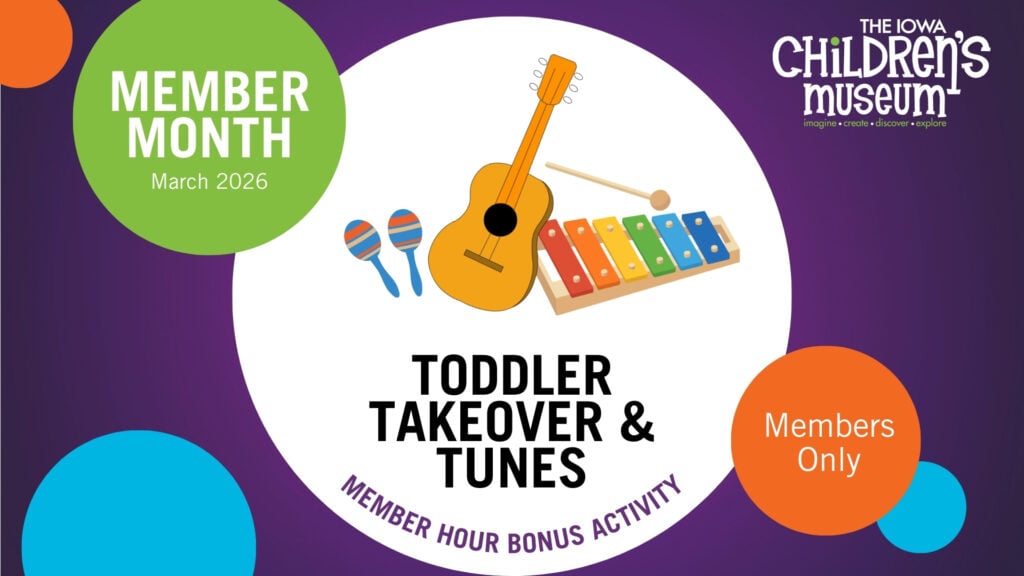 Please note: Toddler Takeovers are held on Wednesdays and Sundays each month during the school year. Activities from 9-10 a.m. on Wednesdays are available during our Member-Only Hours. We open to the public at 10:00 a.m. and invite ALL little learners to join in the fun from 10 a.m. to 12 p.m.